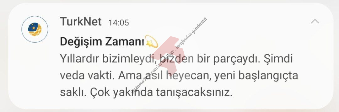Dün ve bugün Turknet tarafından abonelere atılan yukarıdaki mesaj abonelerin meraklarını üzerine çekti. Ve meraklarını gidermek isteyen bazı aboneler gizli tutulmaya çalışılmasına rağmen veda edilen şeyin logo olduğunu iddia etti ve bize aşağıdaki görselleri ulaştırdı.